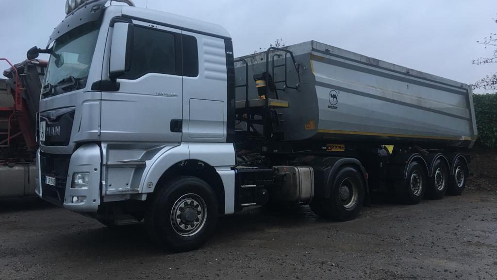 Für kurze Transportentfernungen bieten wir Ihnen die Möglichkeit, Güter mit 18t Kipperzügen zu transportieren. Diese Anhänger können auch vom Kunden gemietet werden.